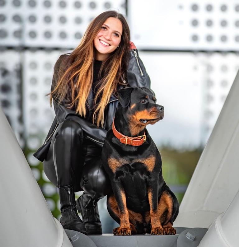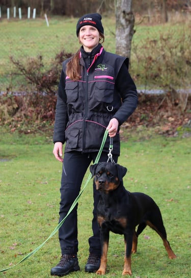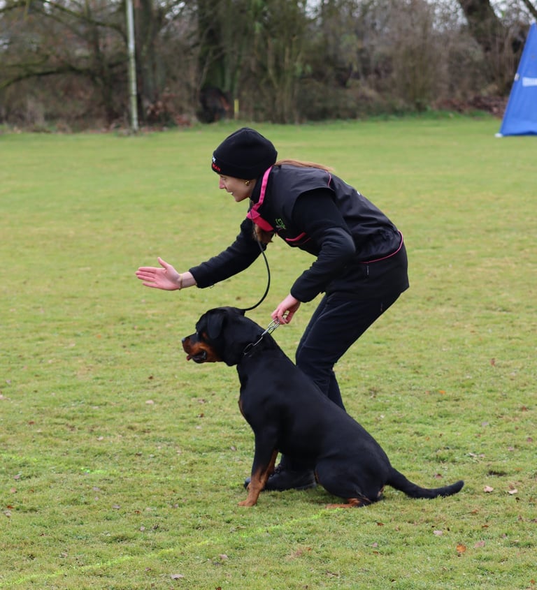 Und hier ist sie, unsere Zuchthündin für 2026, Yvie von der Steineiche, zusammen mit ihrer Besitzerin Sophia.